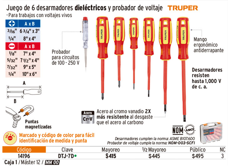 Juego 6 desarmadores dieléctricos y 1 probador de corriente