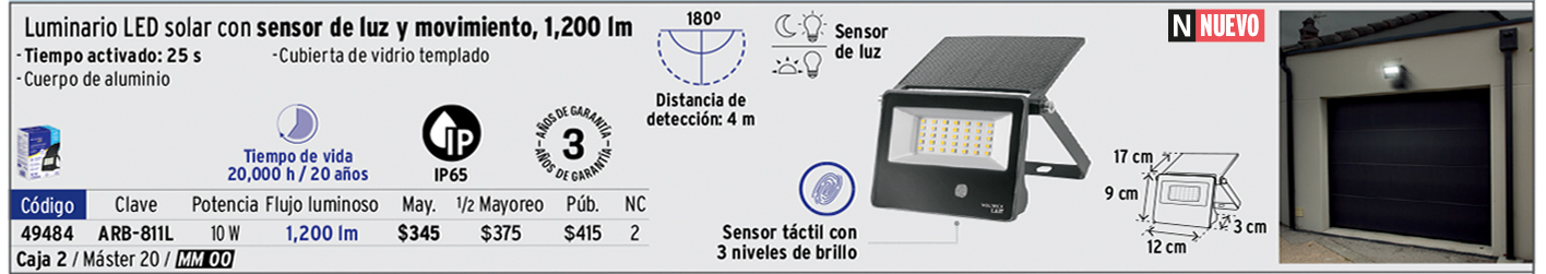 Luminario Solar LED 10W 6500K, sensor de movimiento, VOLTECK