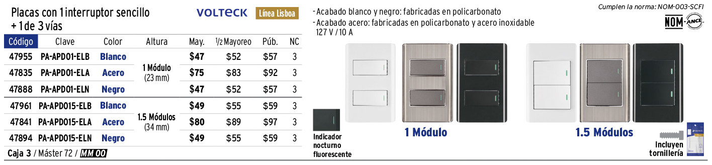 Tapa de 3" x 3" para caja octagonal, VOLTECK