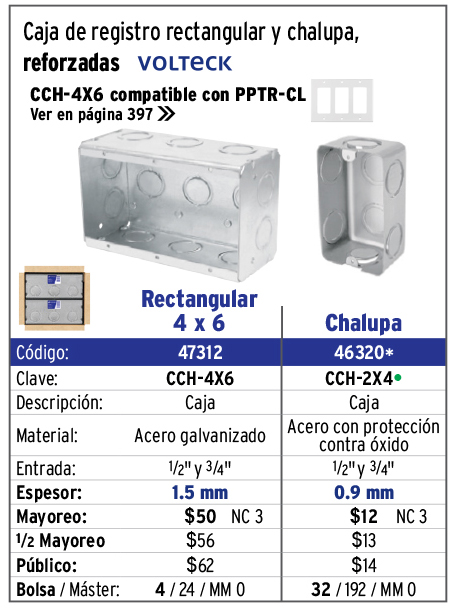 Caja tipo chalupa 2" x 4" reforzada, VOLTECK