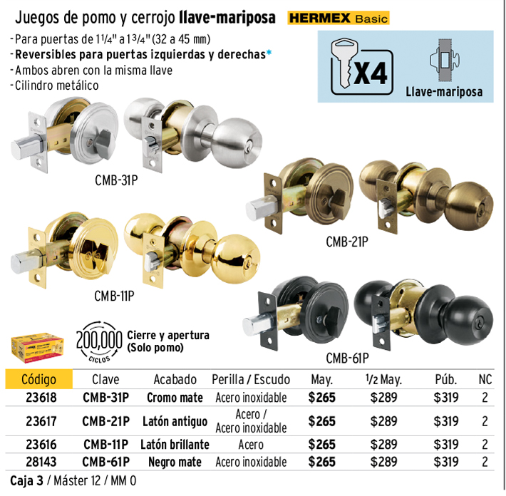 Combo cerraduras, llave-mariposa, Negro, HERMEX BASIC