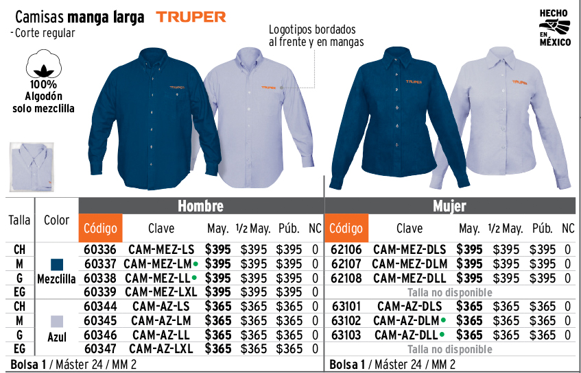 Camisa de mezclilla manga larga para hombre, M, TRUPER