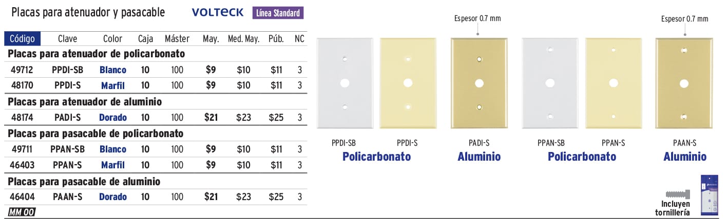 Placa de ABS pasacable, Standard, marfil, VOLTECK