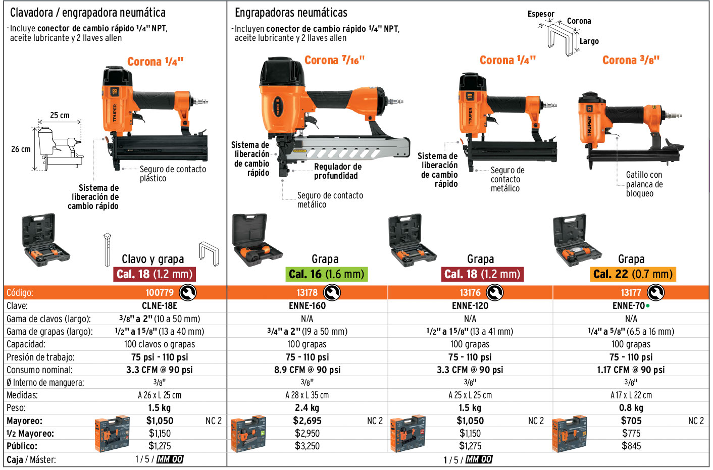 Clavadora y engrapadora neumática profesional, calibre 18