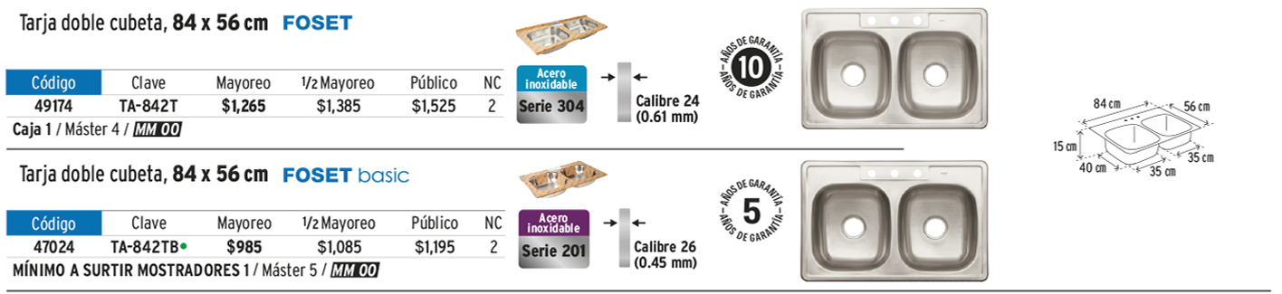 Tarja de empotrar 84 x 56 cm doble tina, FOSET