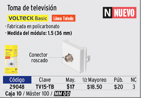 Toma de televisión de 1.5 módulos, línea Toledo, BASIC