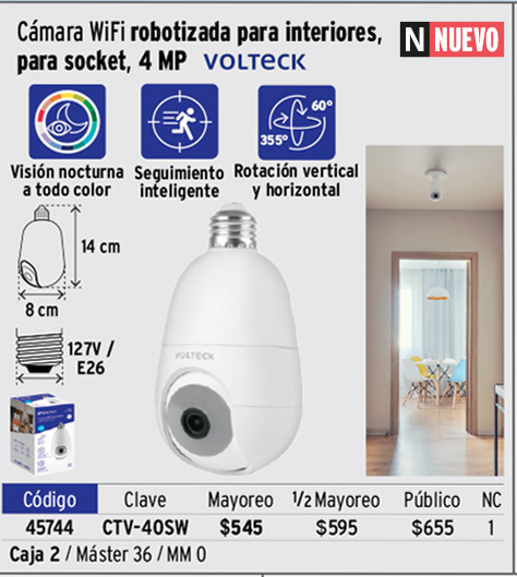 Cámara WiFi para socket, 4MP, VOLTECK