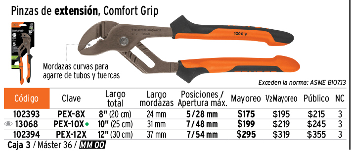 Pinzas de extensión 8" mango Comfort Grip, TRUPER EXPERT