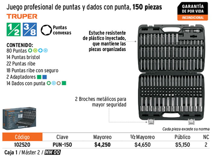 Juego de puntas y dados con punta para mecánica, 150 piezas