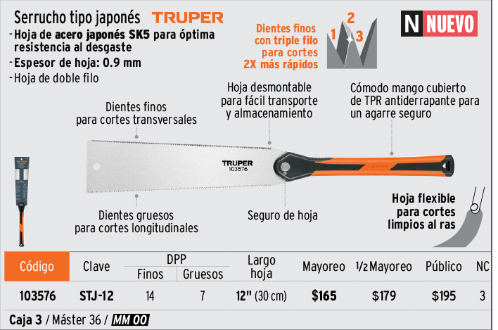 Serrucho tipo japonés de 12" mango comfort grip, TRUPER