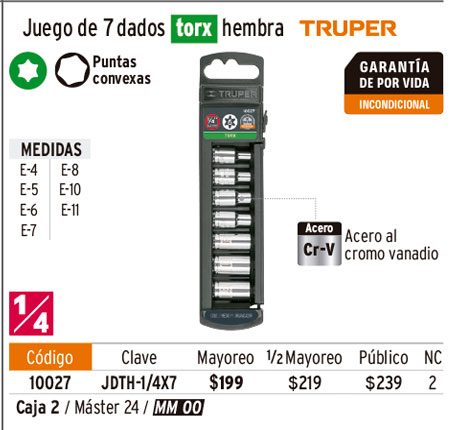 Juego de 7 dados torx cuadro 1/4", TRUPER