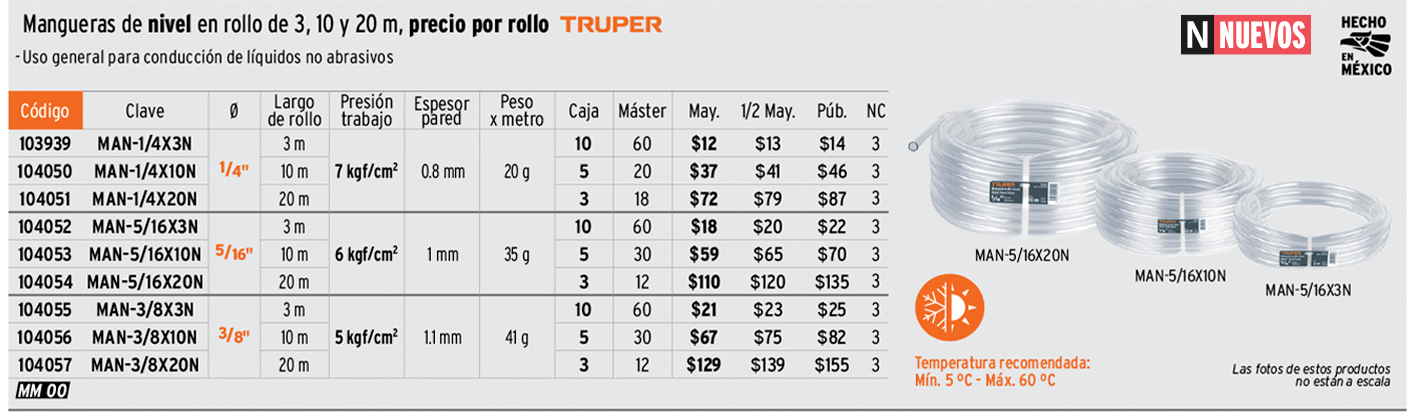 Manguera de Nivel, 3/8", rollo de 10m, TRUPER