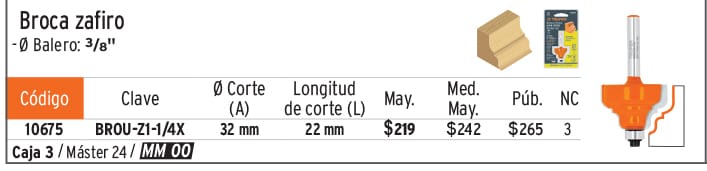 Broca para router, zafiro, 1-1/4", con balero, TRUPER