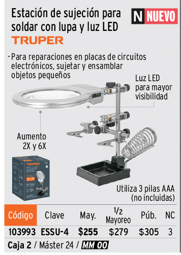 Estación de sujeción con lupa y luz LED, TRUPER