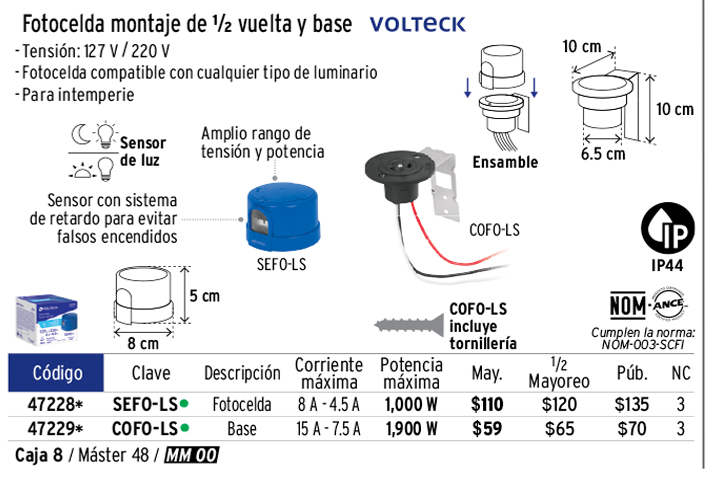 Fotocelda montaje de 1/2 vuelta, tensión 127 - 220 V