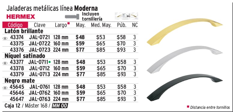 Jaladera de 160mm, línea Moderna, níquel, HERMEX