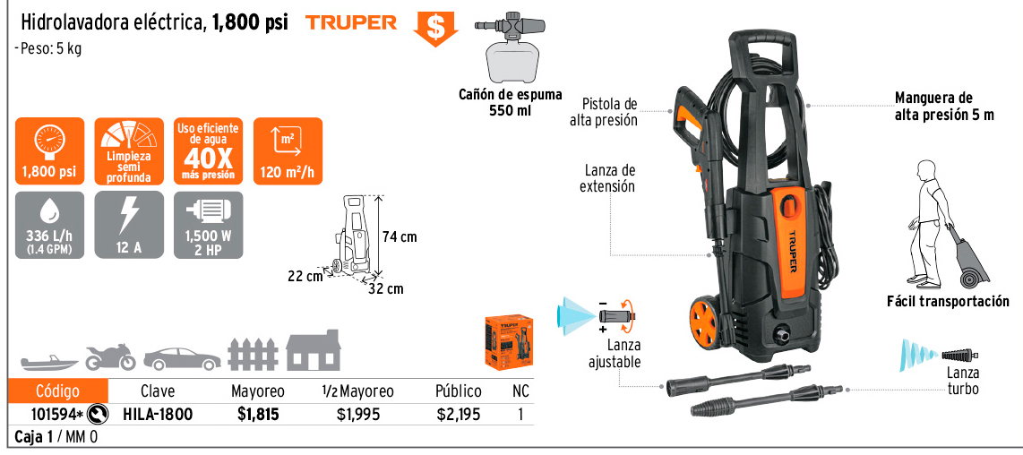 Hidrolavadora eléctrica 1800 PSI, TRUPER