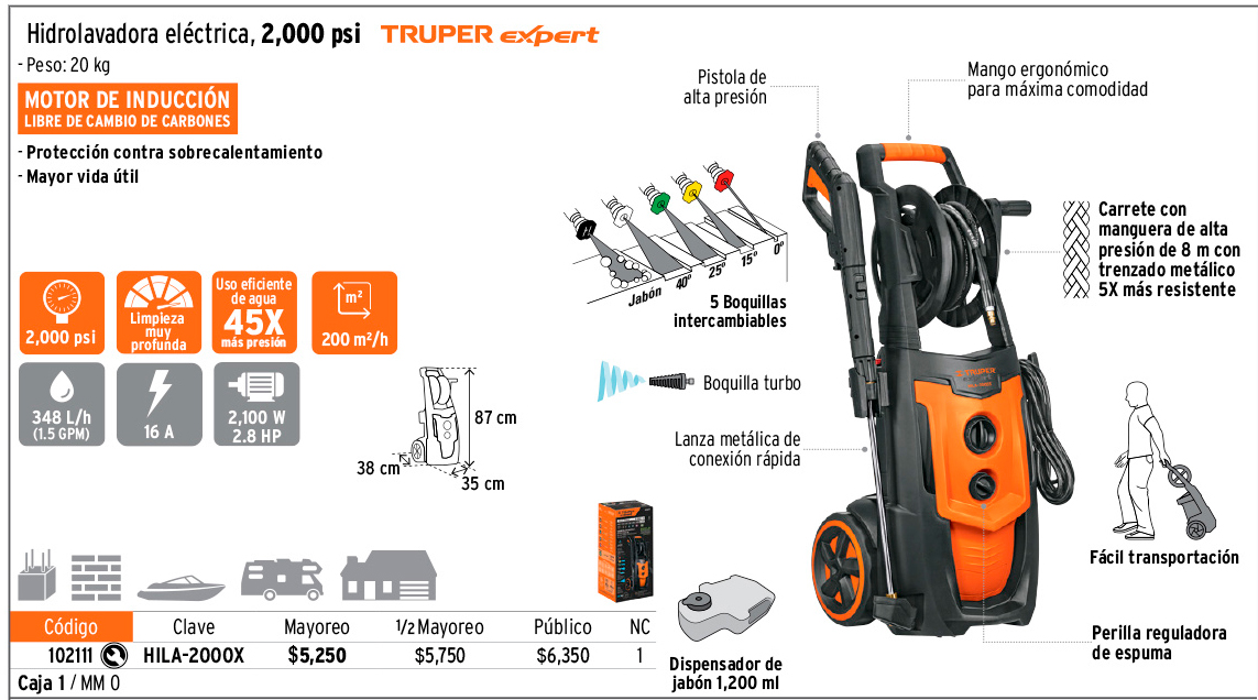 Hidrolavadora eléctrica,2000 PSI, motor de inducción, EXPERT