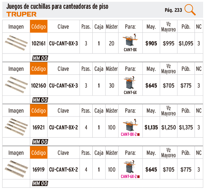Cuchillas para canteadora CANT-8X, 3 pzs en caja, TRUPER