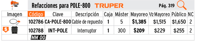 Cable de repuesto para polipasto eléctrico POLE-800, TRUPER