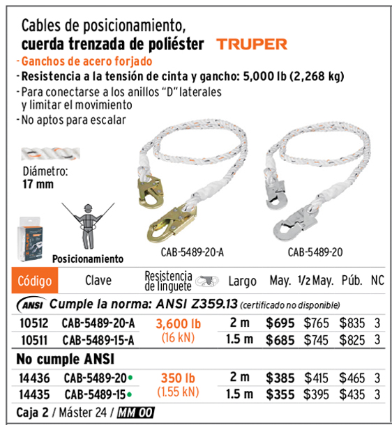 Cable de posicionamiento cuerda de poliéster de 1.5 m, ANSI