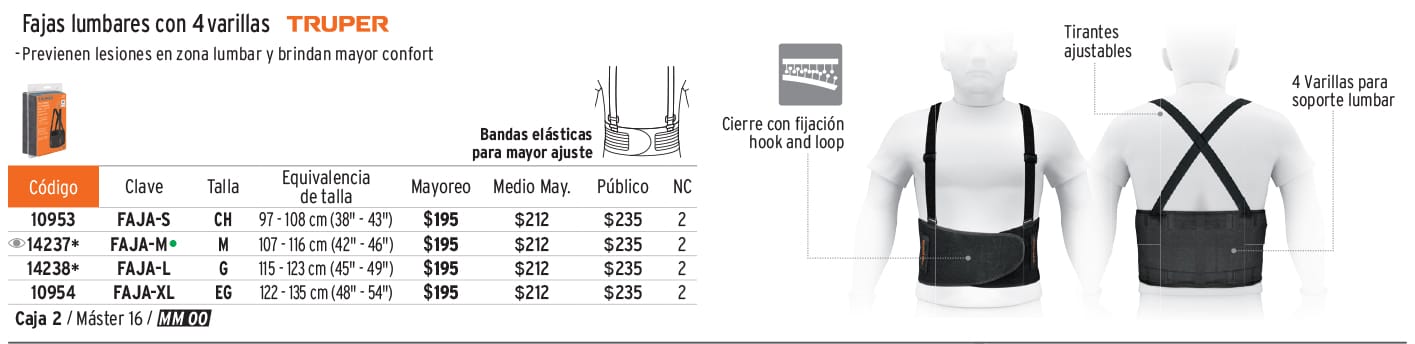 Faja lumbar, talla XG, TRUPER