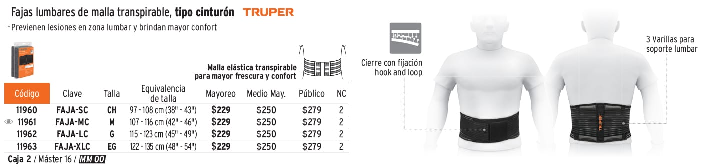 Faja lumbar tipo cinturón de malla transpirable, G, TRUPER
