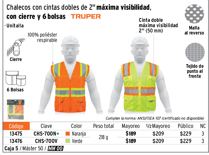 Chaleco de seguridad naranja max visibilidad y 6 bolsas