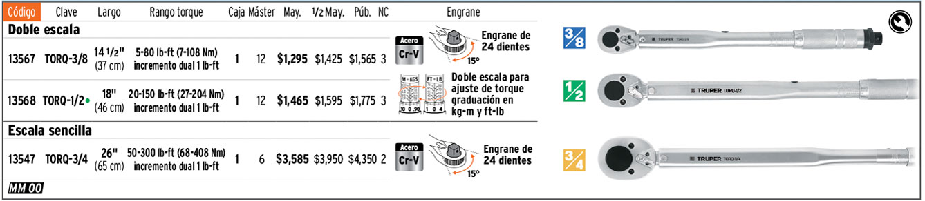 Torquímetro micrométrico, cuadro 3/4", TRUPER