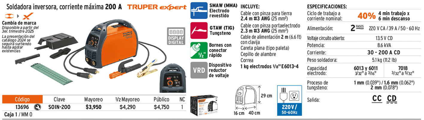 Soldadora inversora 200A, 220V, TRUPER EXPERT