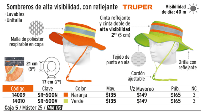 Sombrero naranja alta visibilidad con reflejante, TRUPER