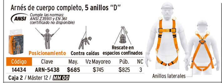 Arnés de cuerpo completo con 5 anillos, ANSI, TRUPER