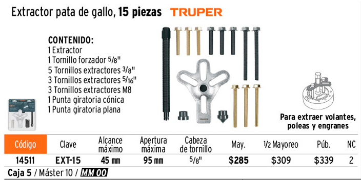 Extractor pata de gallo, 15 piezas, TRUPER