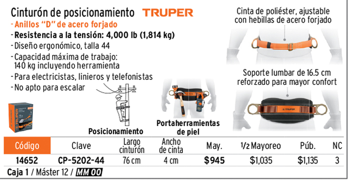 Cinturón de posicionamiento talla 44, TRUPER
