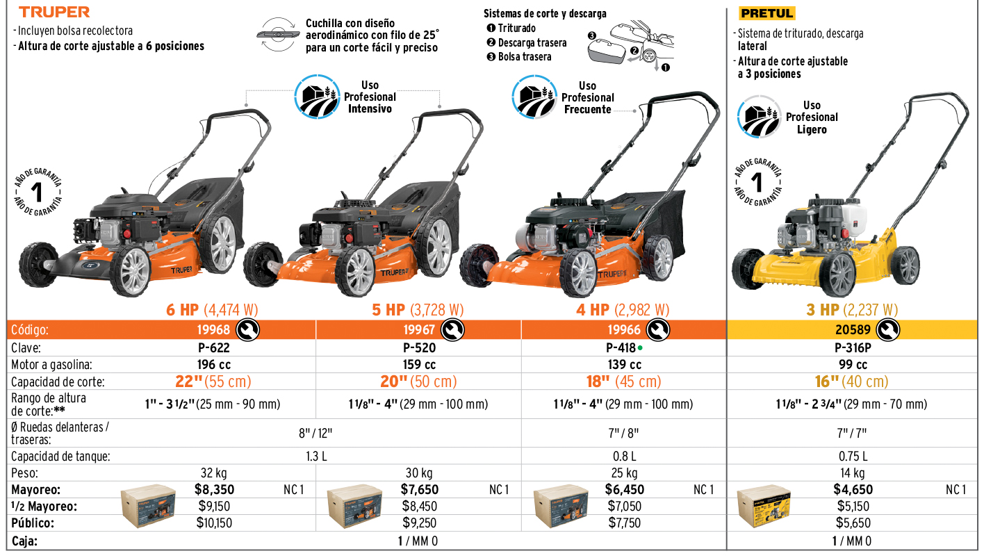 Podadora con motor a gasolina de 4 HP, 18" de corte, TRUPER