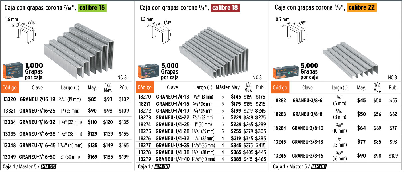 Caja con 5000 grapas corona 1/4" calibre 18, 16mm p/ENNE-120