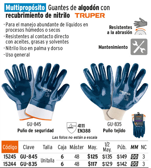 Guantes de algodón recubiertos de nitrilo, puño de seguridad