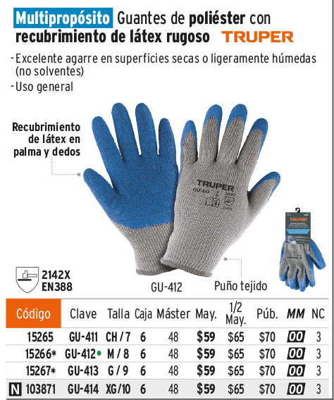 Guantes de poliéster recubiertos de látex, CH, TRUPER