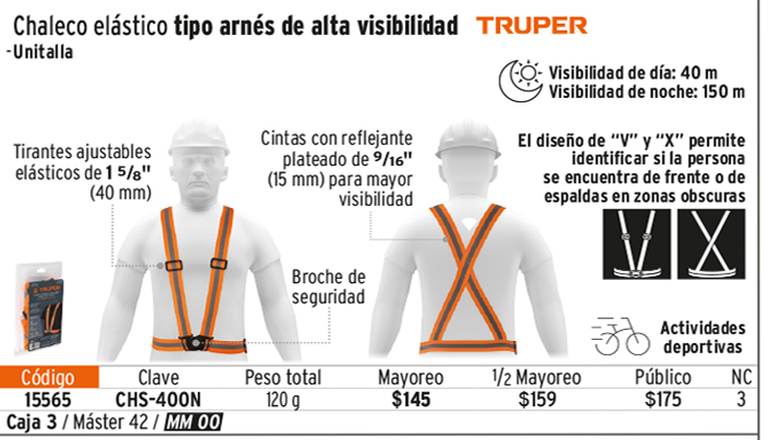 Chaleco elástico tipo arnés naranja con reflejante, TRUPER