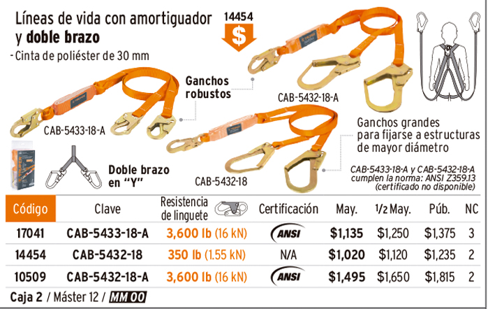 Línea de vida con absorbedor de impacto, doble brazo, ANSI