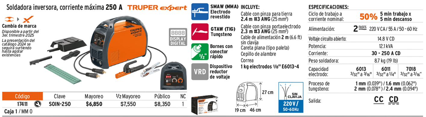 Soldadora inversora 250A, 220V, TRUPER EXPERT