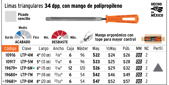 Lima triángulo pesado 7", 34 dpp, con mango, TRUPER