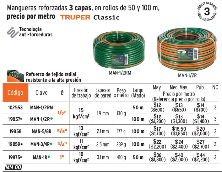 Metro de manguera 1" 3 capas en rollo de 50 m, TRUPER