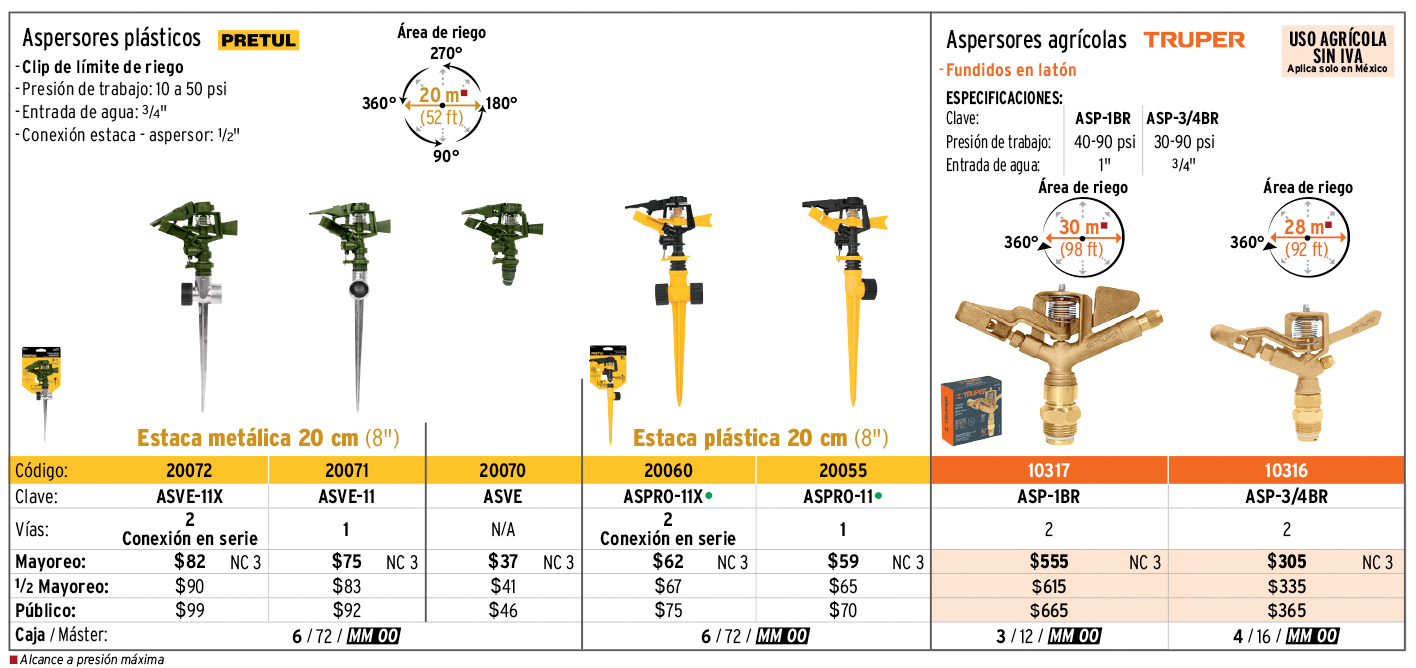Aspersor plástico 11" una vía, estaca plástica, PRETUL