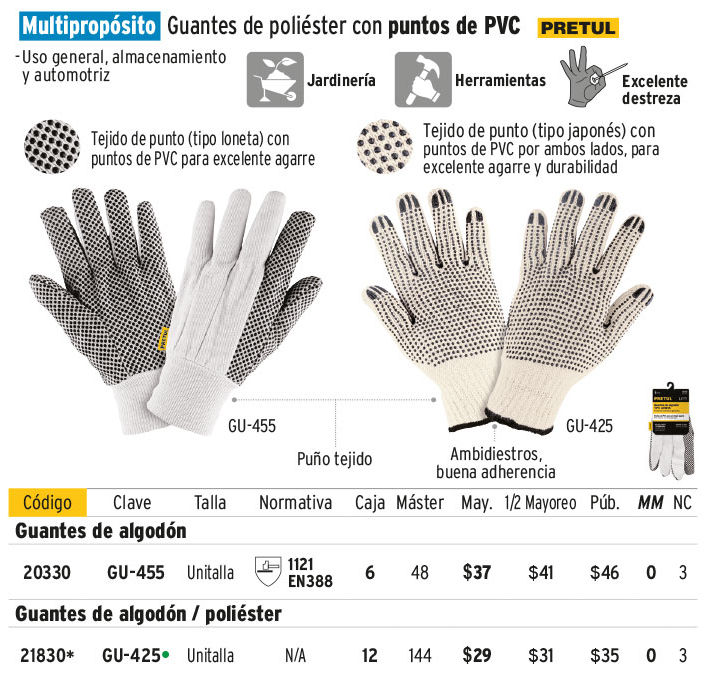 Guantes de algodón con puntos de PVC en palma y dorso,PRETUL