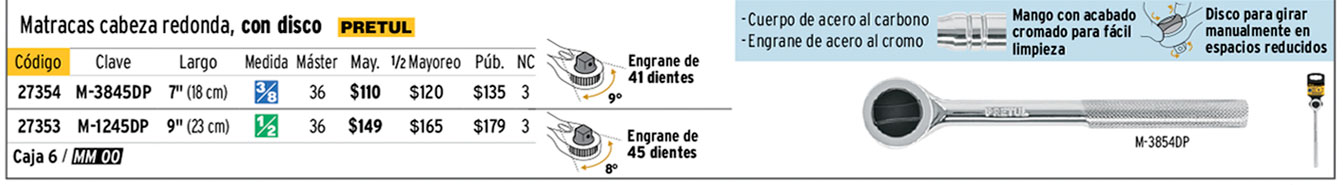 Matraca cuadro 1/2" cabeza redonda con disco, PRETUL