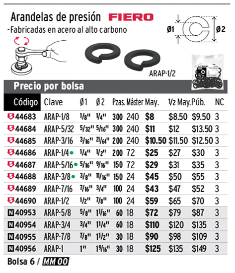 Bolsa con 60 arandelas de presión de 5/8", FIERO