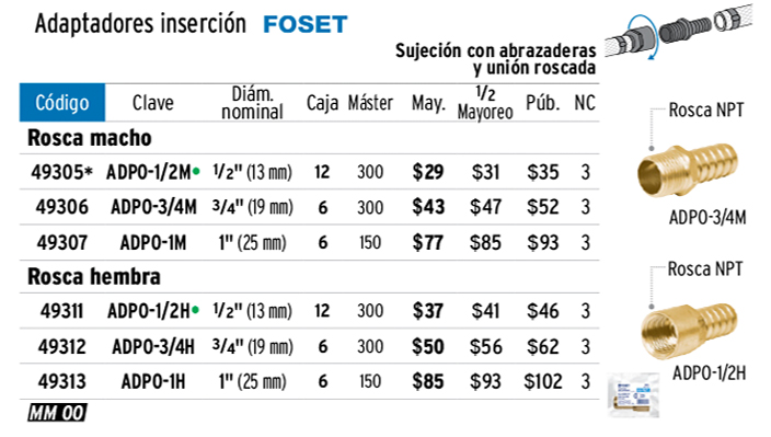 Adaptador hembra de latón 1" para manguera, FOSET