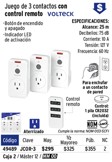 Juego de 3 Contactos con control remoto, VOLTECK