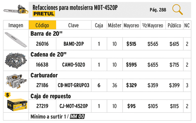 Caja de empaque de repuesto para MOT-4520P, PRETUL